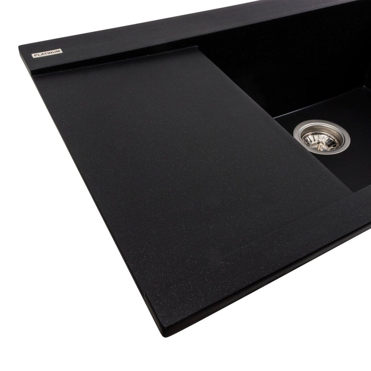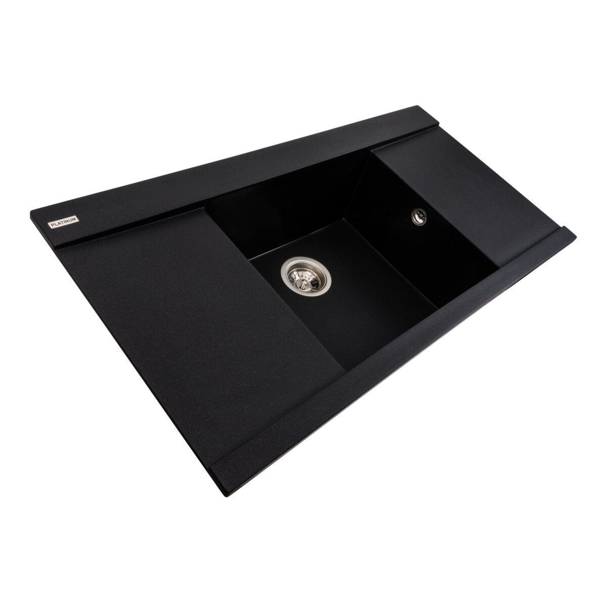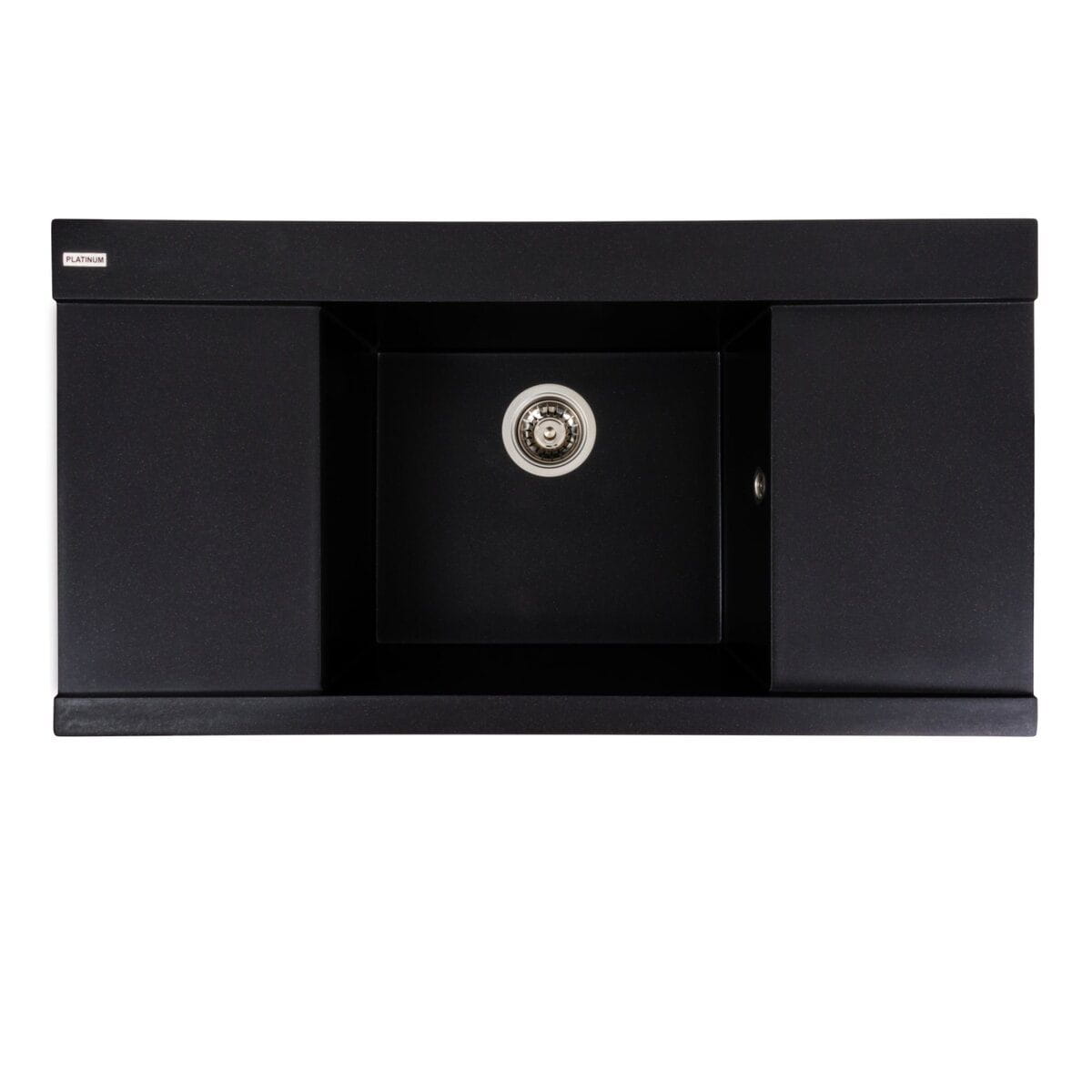 Гранитная мойка Platinum ATLAS 960х510 врезная, прямоугольная, матовая черная металлик