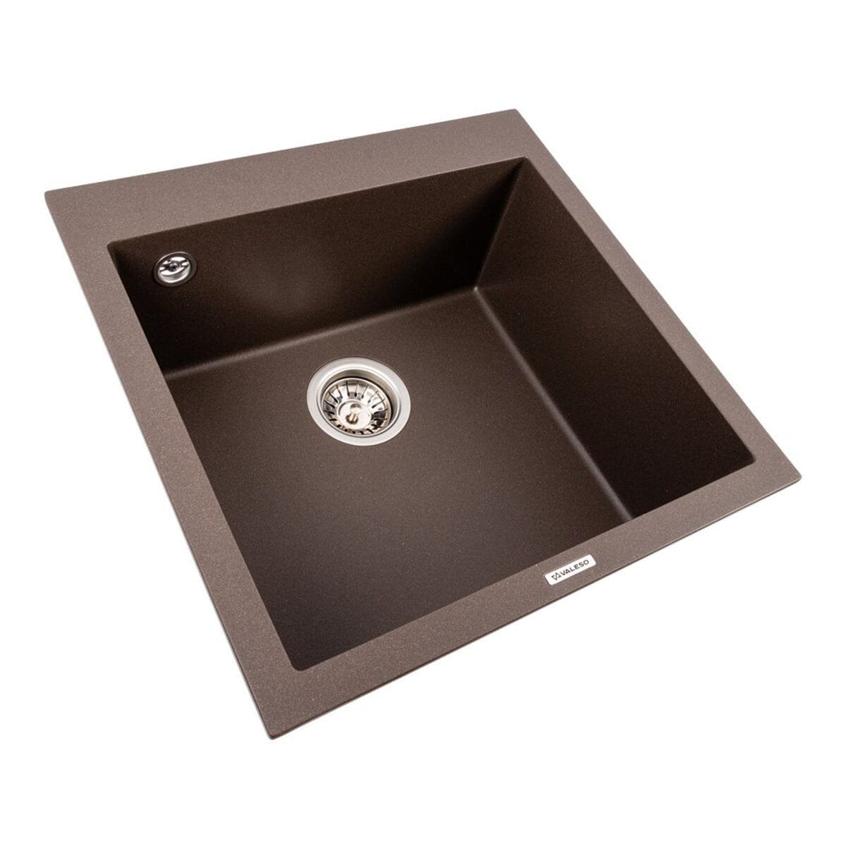 Гранитная мойка Valeso Galax 500х500 врезная, квадратная, матовая темная скала