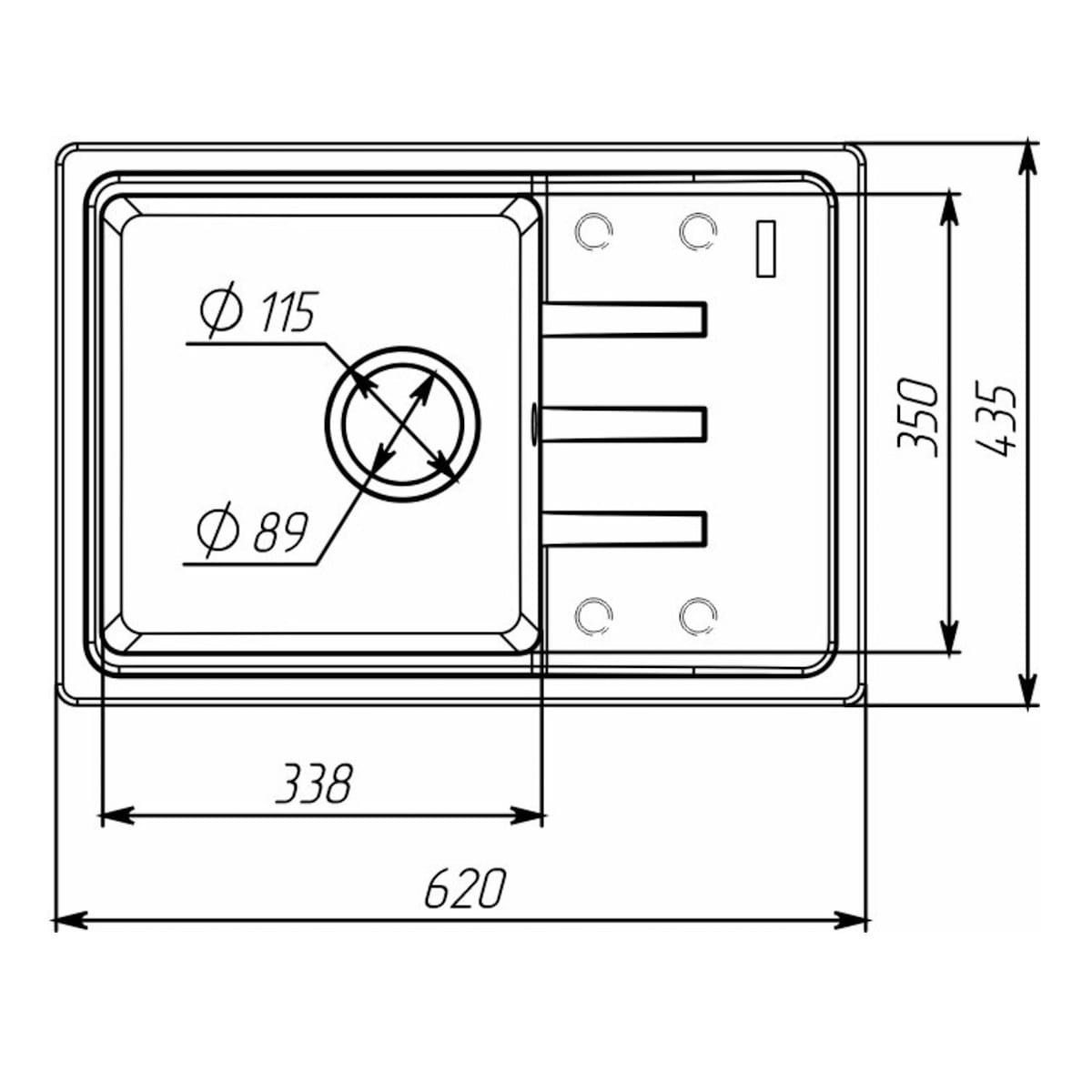 Гранитная мойка Valeso Liana 620х430 врезная, прямоугольная, матовая графит