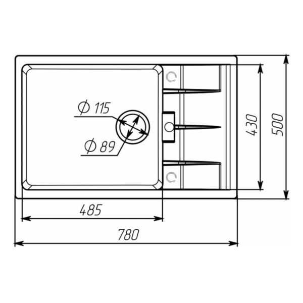 Гранитная мойка Valeso Roma 780х500 врезная, прямоугольная, матовая карбон