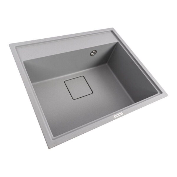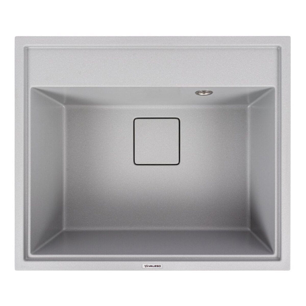 Гранитная мойка Valeso SHERLIT 600х500 врезная, прямоугольная, матовая серая металлик