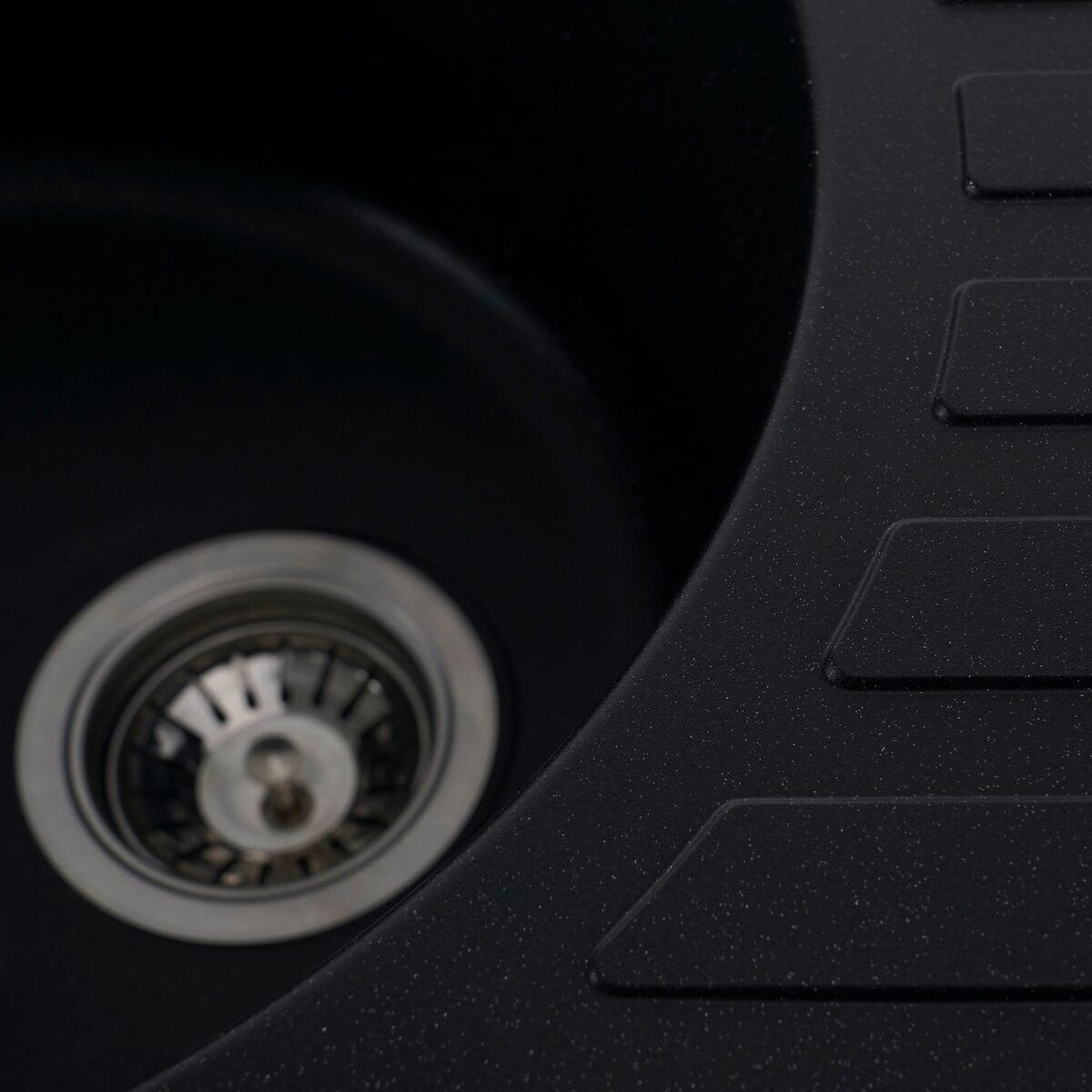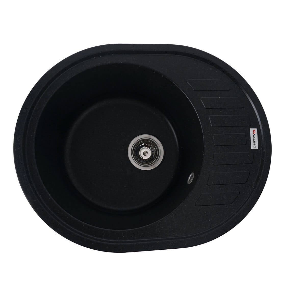 Гранитная мойка Valeso Soul 620х500 врезная, овальная, матовая черная металлик