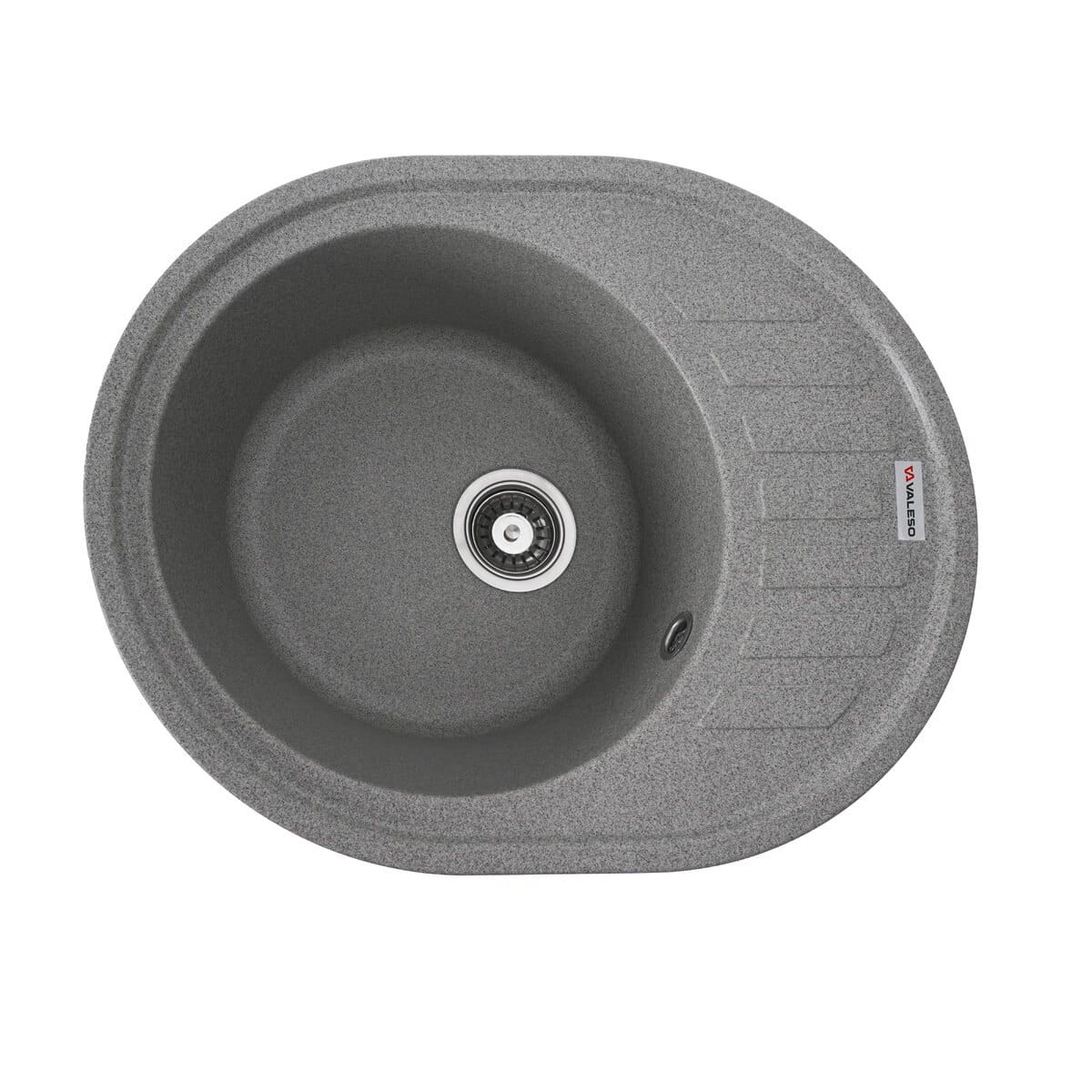 Гранитная мойка Valeso Soul 620х500 врезная, овальная, матовая светло-серая