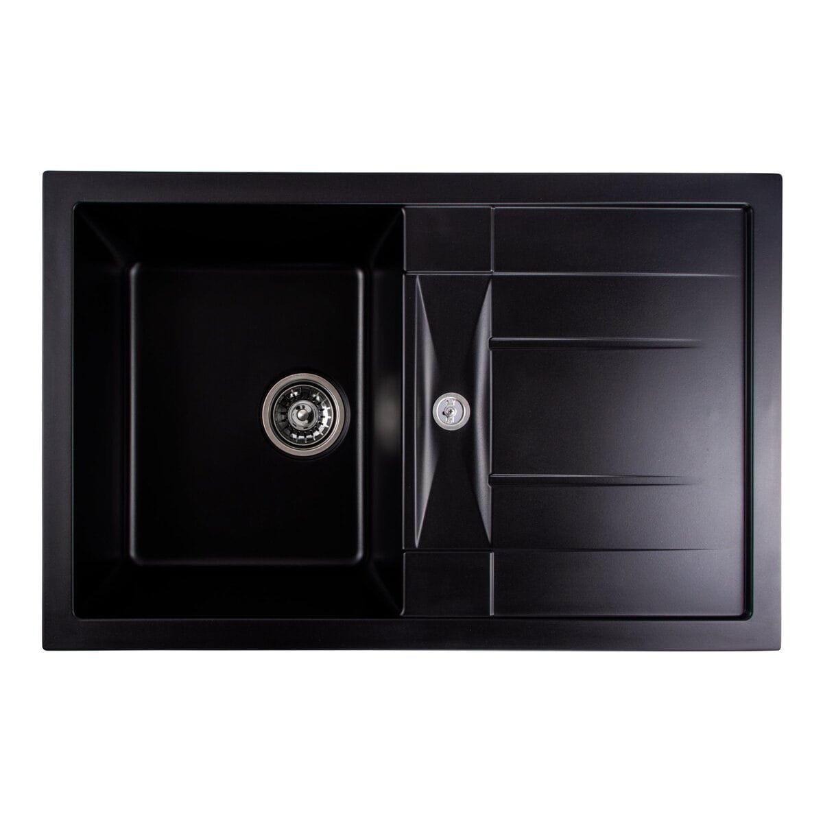 Гранитная мойка Valeso Troya 780×500 накладная, прямоугольная, черная матовая