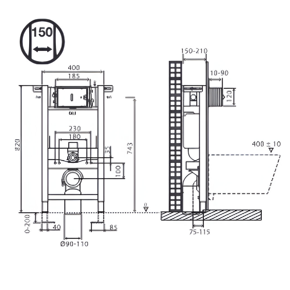 | Комплектация | G1/2" запорный клапан, Вентиляционный отвод для слива и переходник Ø 90/110, Комплект соединительных патрубков для унитаза, Крепежные элементы для рамы, Крепежные элементы для унитаза |