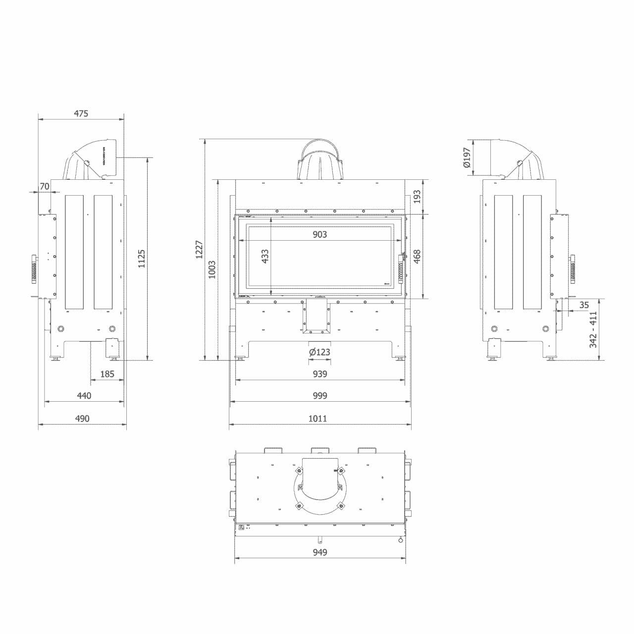 Камин на дровах Kratki Lucy 16 кВт сталь, черный (Ø 200) (5903751317494)