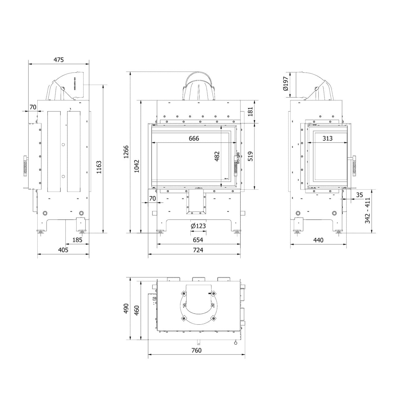 | Конфигурация топки | Двухсторонняя, Стекло в углу слева, Угловая |