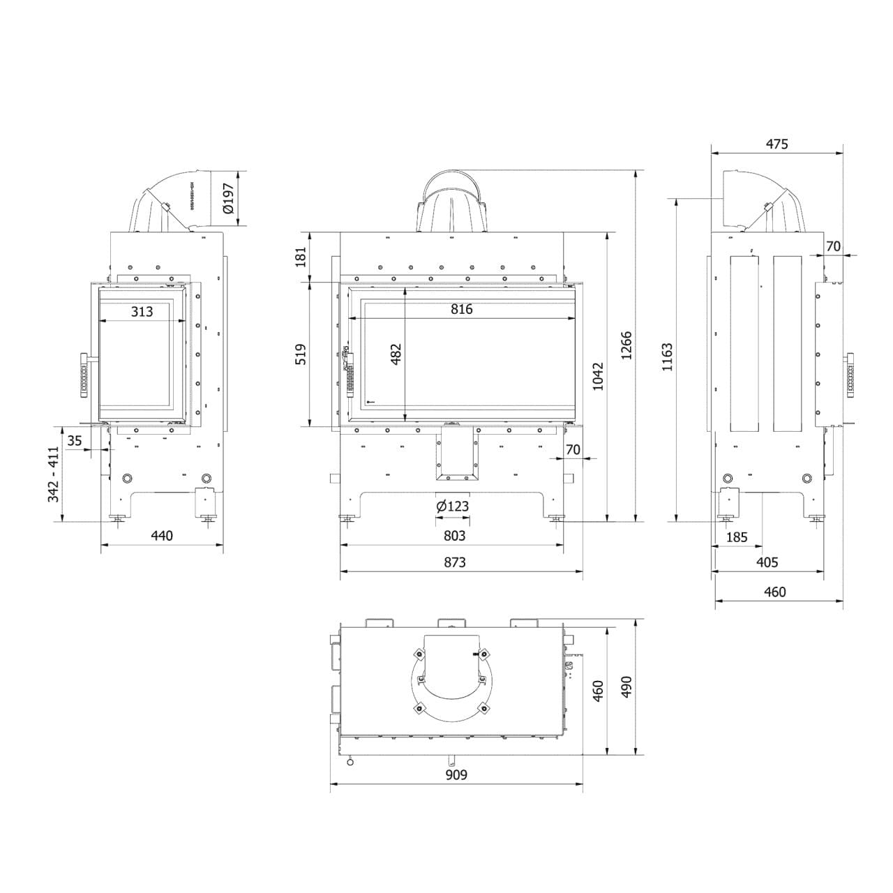 Камин на дровах Kratki Lucy P 14 кВт сталь, черный (Ø 200) (5903751317357)
