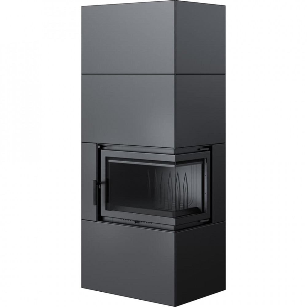 Камин на дровах Kratki SIMPLE 12 BS P 8 кВт сталь, угловой правый, черный (Ø 200)