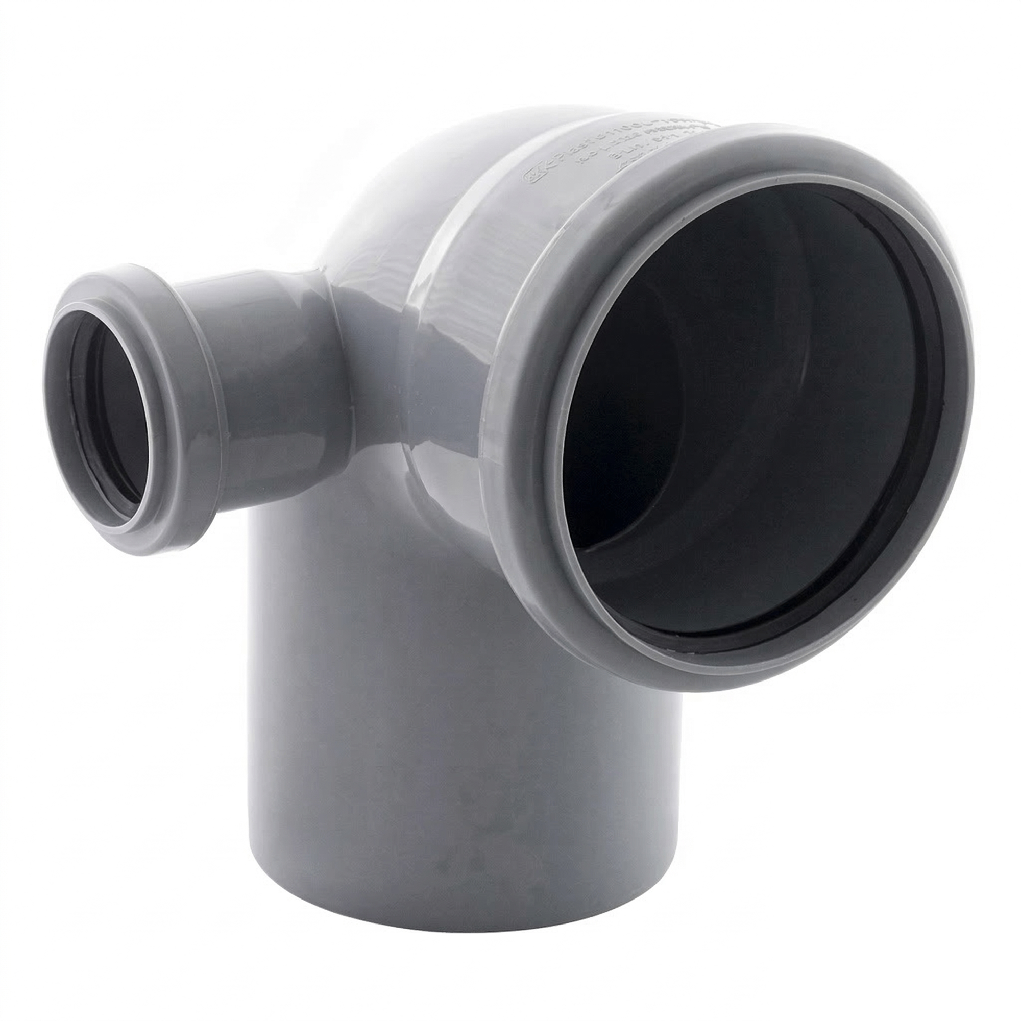 Колено внутренней канализации 110×50 мм 90° с отводом влево