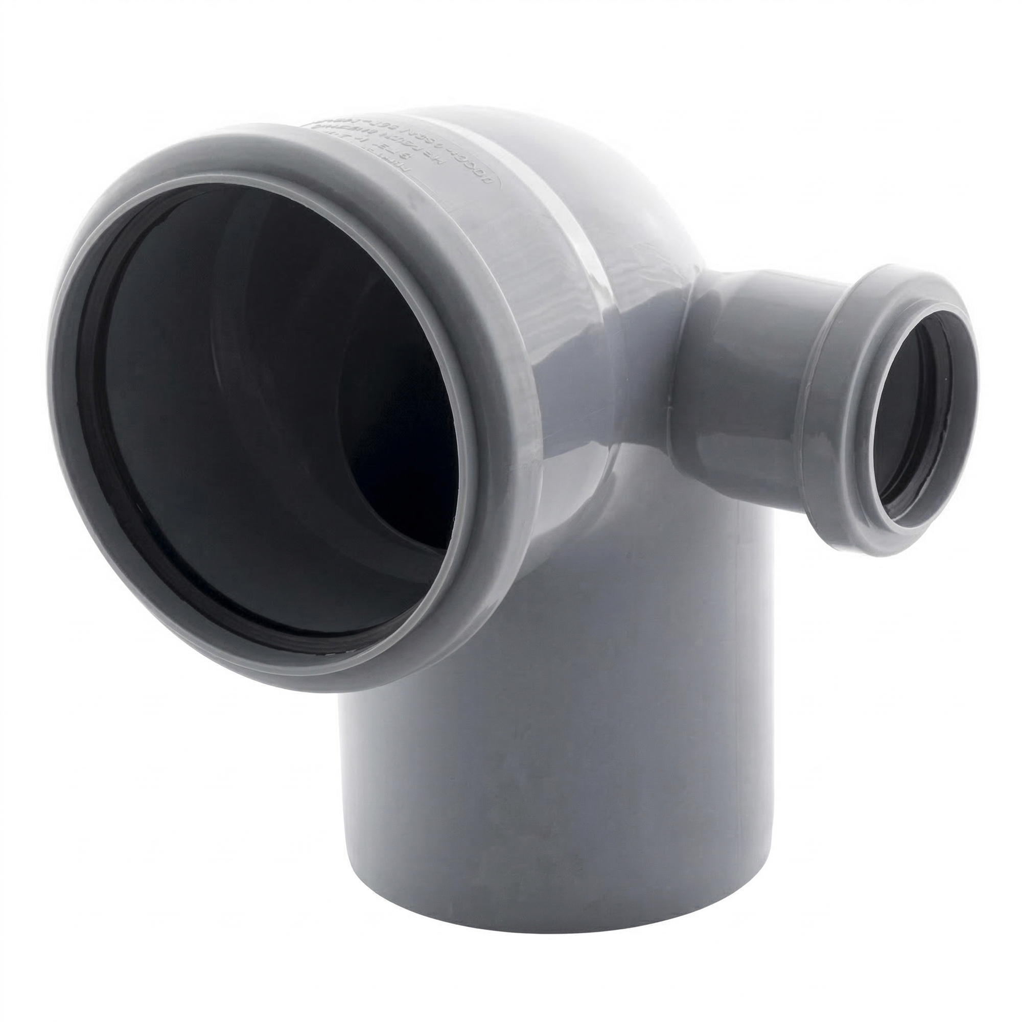 Колено внутренней канализации 110×50 мм 90° с отводом вправо