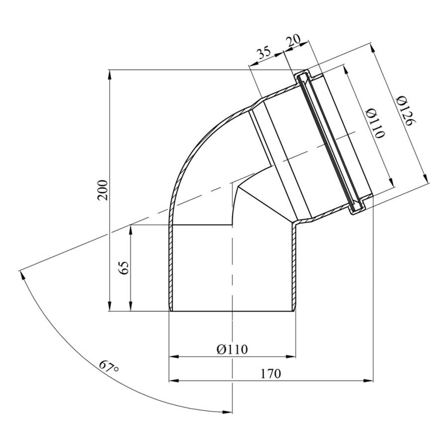 Колено внутренней канализации Rozma 110 мм 67° (CV019524)
