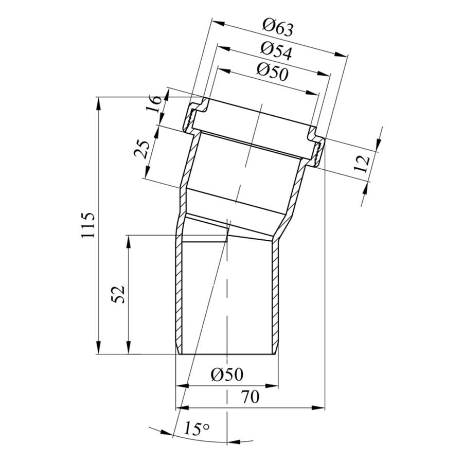 Колено внутренней канализации Rozma 50 мм 15° (CV015749)