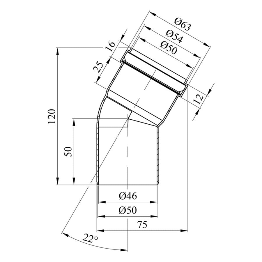 Колено внутренней канализации Rozma 50 мм 22° (CV016250)