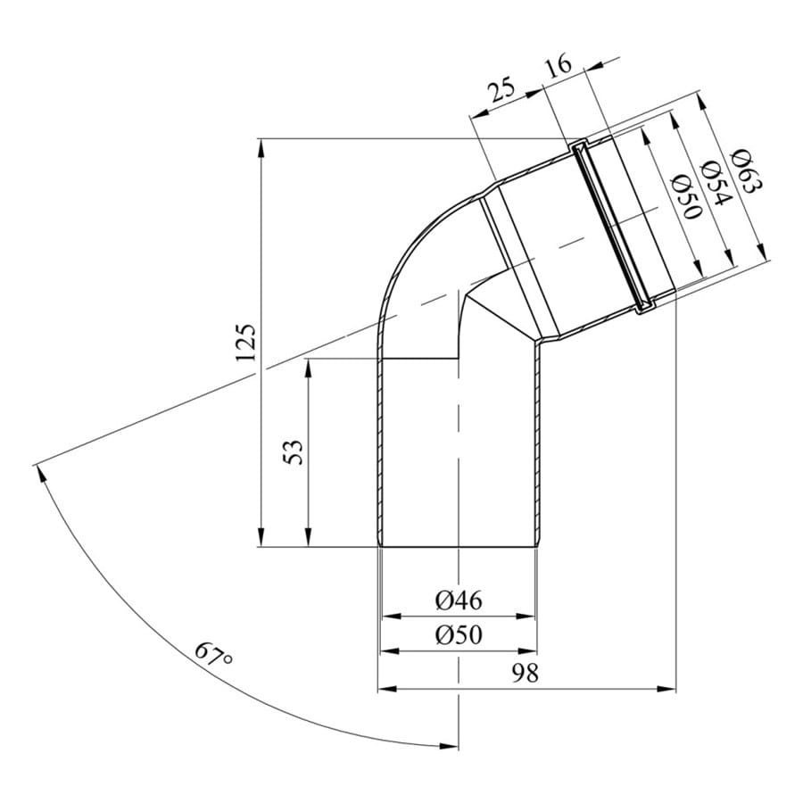 Колено внутренней канализации Rozma 50 мм 67° (CV017121)
