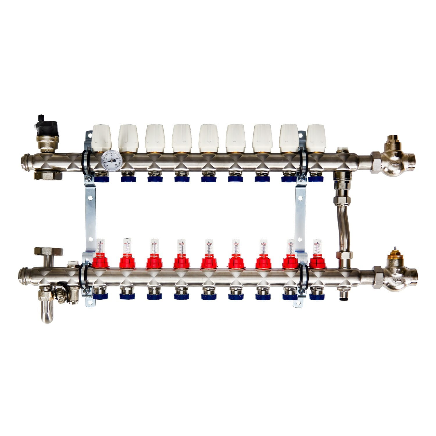 Коллектор для теплого пола Euroaqua 1″x3/4″ 9 выходов, с расходомерами