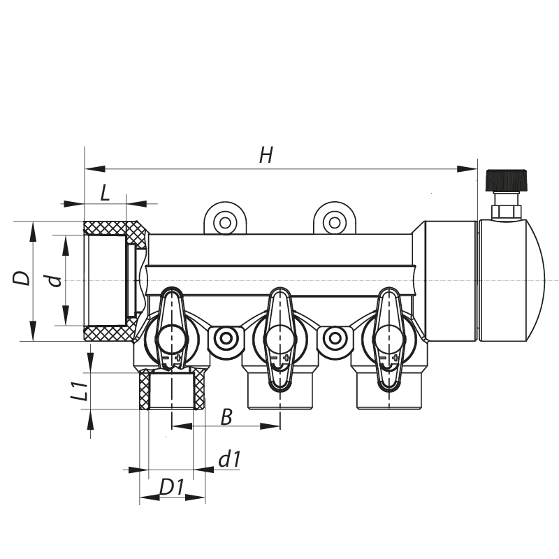 Коллектор полипропиленовый Koer K0170.PRO 40×20 3 выхода, с шаровыми кранами (KP0220)