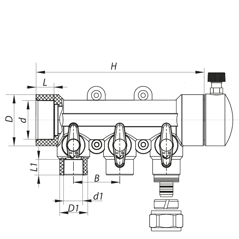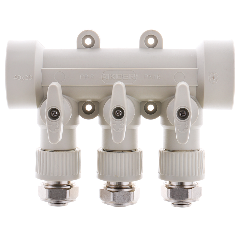 Коллектор полипропиленовый Koer K0191.PRO 40×20 3 выхода, с фитингом (KP2556)