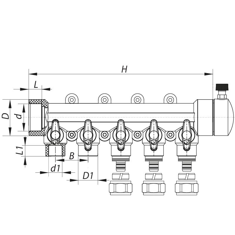 Коллектор полипропиленовый Koer K0193.PRO 40×20 5 выходов, с фитингом (KP2558)