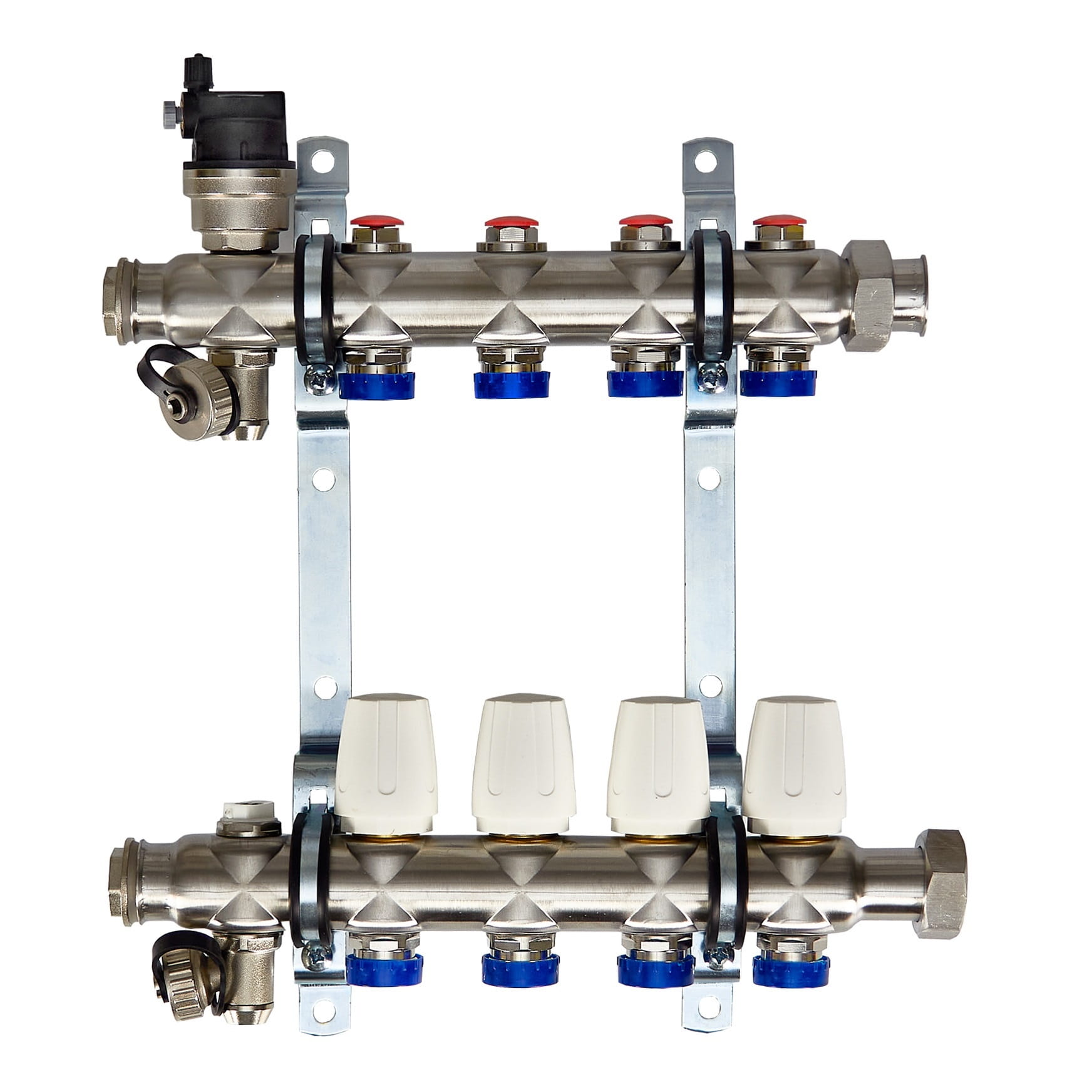 Коллектор теплого пола Euroaqua 1″x3/4″ 4 выходов, без расходомеров