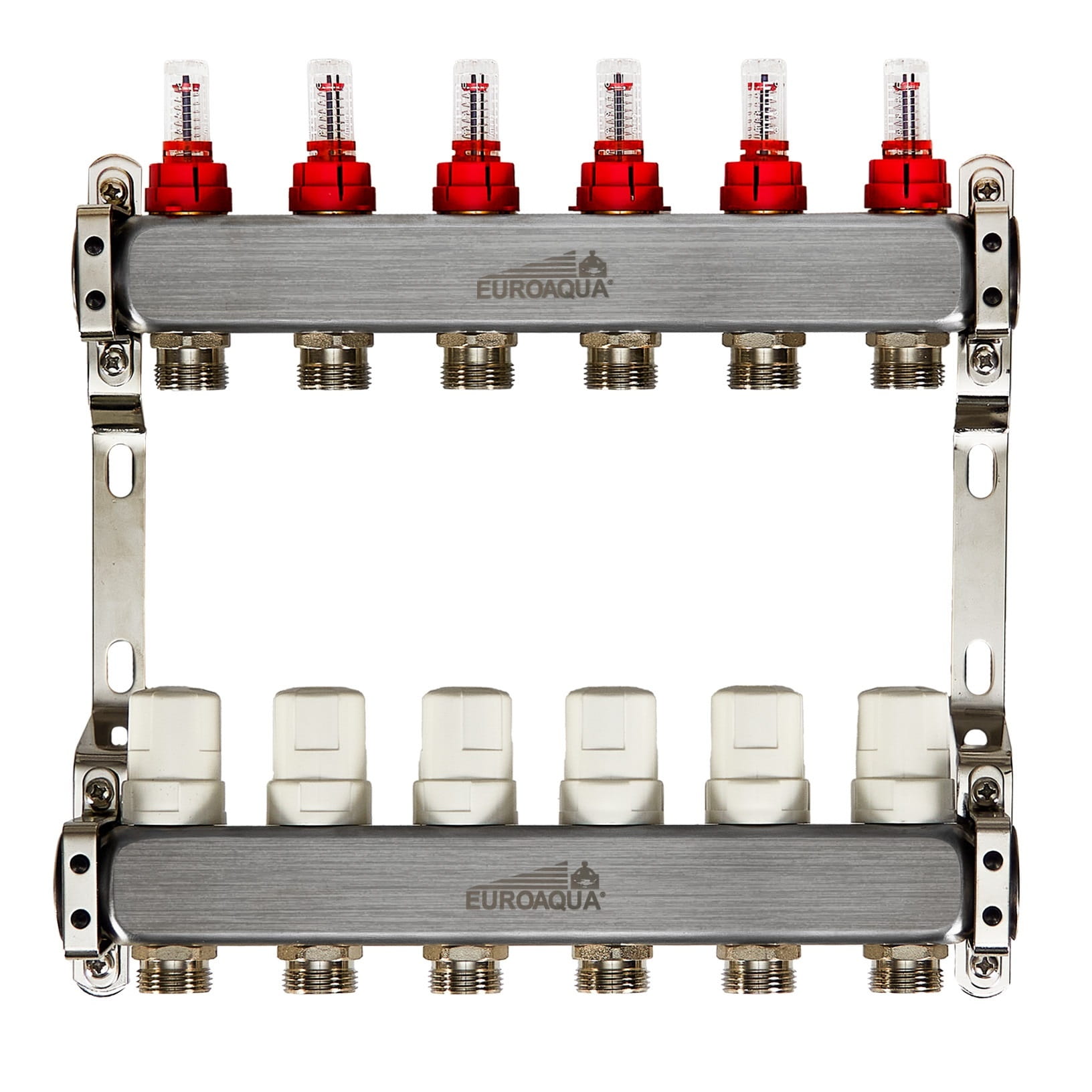Коллектор теплого пола Euroaqua 1″x3/4″ 6 выходов, c расходомерами