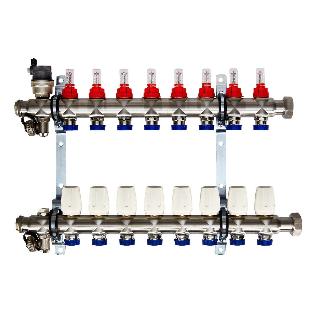 Коллектор теплого пола Euroaqua 1″x3/4″ 9 выходов, c расходомерами