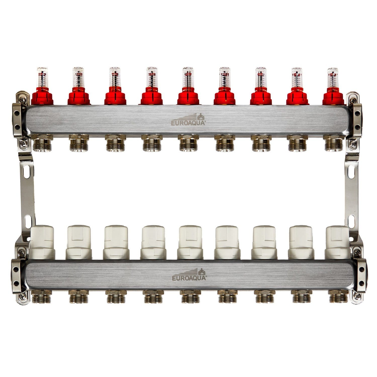 Коллектор теплого пола Euroaqua 1″x3/4″ 9 выходов, c расходомерами