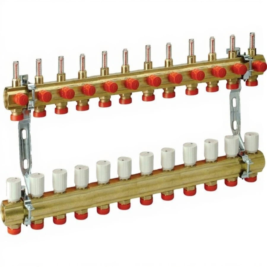 Коллектор теплого пола Giacomini 1″ x 3/4″E 12 выходов, с расходомерами, латунный (R553KY072)