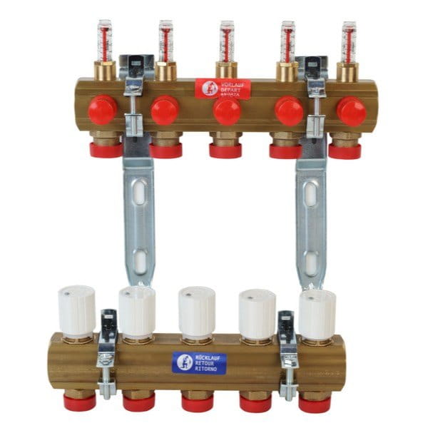 Коллектор теплого пола Giacomini 1″ x 3/4″E 5 выходов, с расходомерами, латунный (R553KY065)