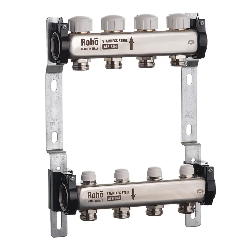 Коллектор теплого пола Roho R805-04 1″x3/4″ 4 выходов, без расходомеров (RO0058)