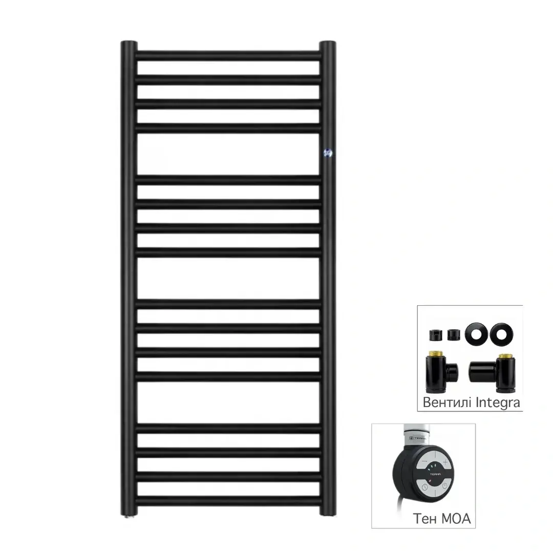 Комбинированный полотенцесушитель Instal Projekt Circo 1095×500 сталь, черный матовый + ТЭН MOA и вентиль Integra