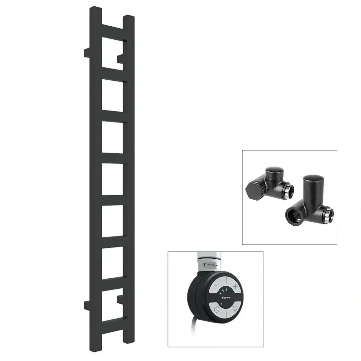 Комбинированный полотенцесушитель Terma Easy 960×200 сталь, черный матовый + ТЭН MOA и вентиль Integra