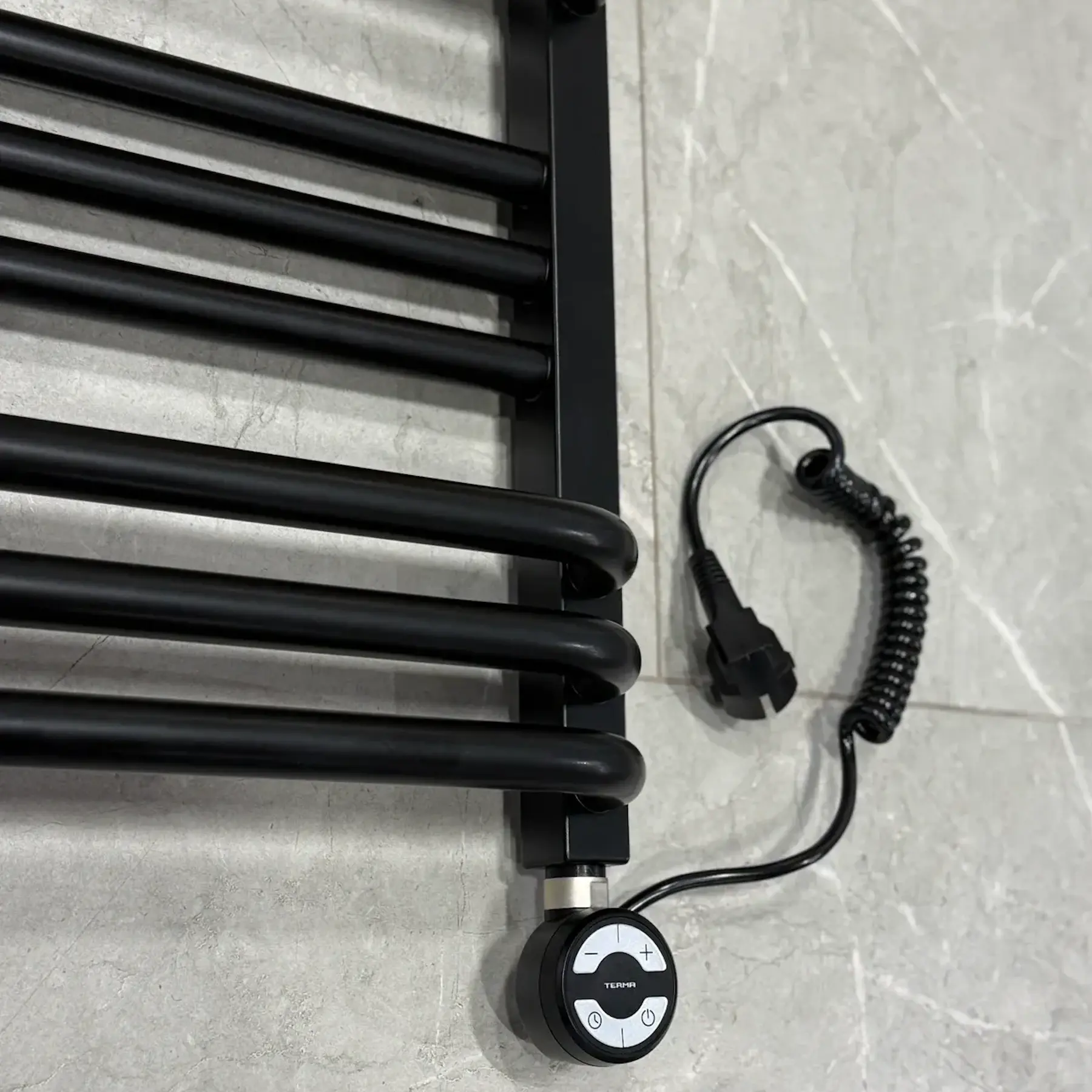 Комбинированный полотенцесушитель Terma Pola 780×500 сталь, черный + ТЭН MOA и вентиль Integra