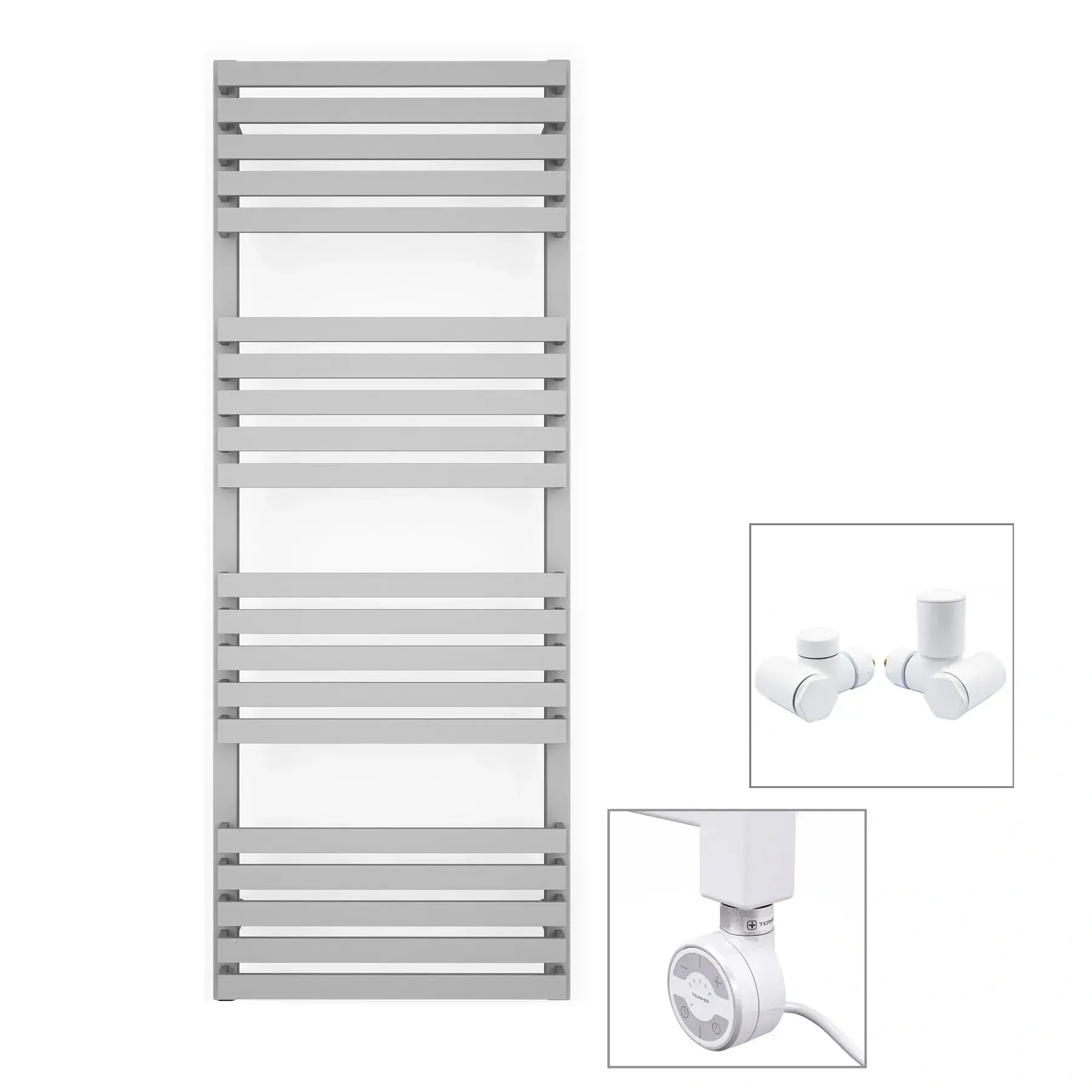 Комбинированный полотенцесушитель Terma Quadrus Slim 1185×450 сталь, белый + ТЭН MOA и вентиль Integra