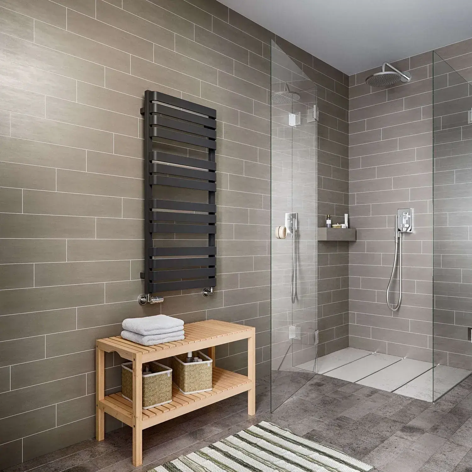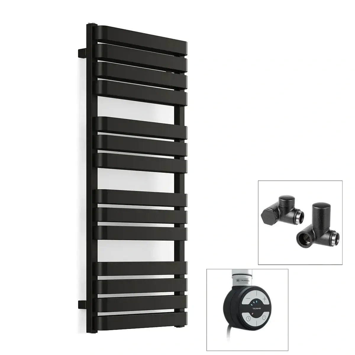 Комбинированный полотенцесушитель Terma Warp T 1110×500 сталь, черный + ТЭН MOA и вентиль Integra