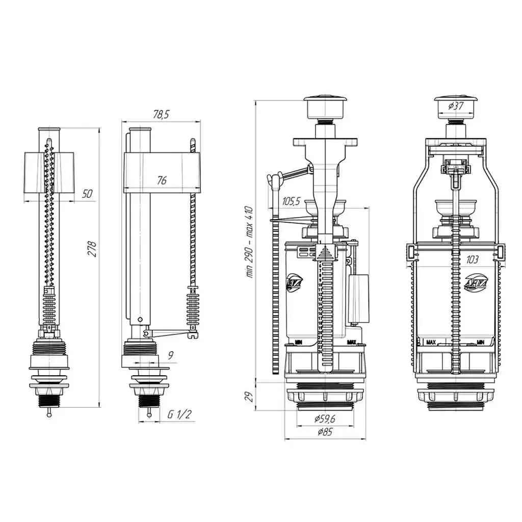 Комплект арматуры для бачка унитаза Kronoplast BK2R0810 1/2″ 3/6л с нижним подключением