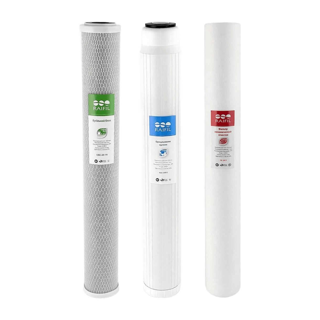Комплект картриджей для воды Raifil 2,5″x20″ для обратного осмоса (SC-20, GAC-20RC, CBC-20-10)