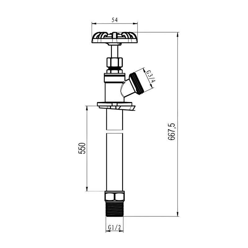 Кран поливочный Koer KR.290-55 1/2″x3/4″ 55 см незамерзающий, нержавеющая сталь (KR5257)