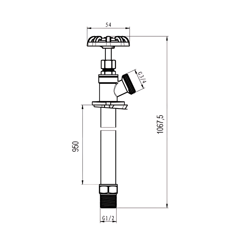 Кран поливочный Koer KR.290-95 1/2″x3/4″ 95 см незамерзающий, нержавеющая сталь (KR5699)