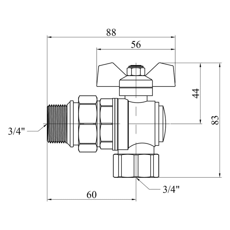 Кран с американкой STA LB 3/4″ ВН угловой, латунь (CV024732)