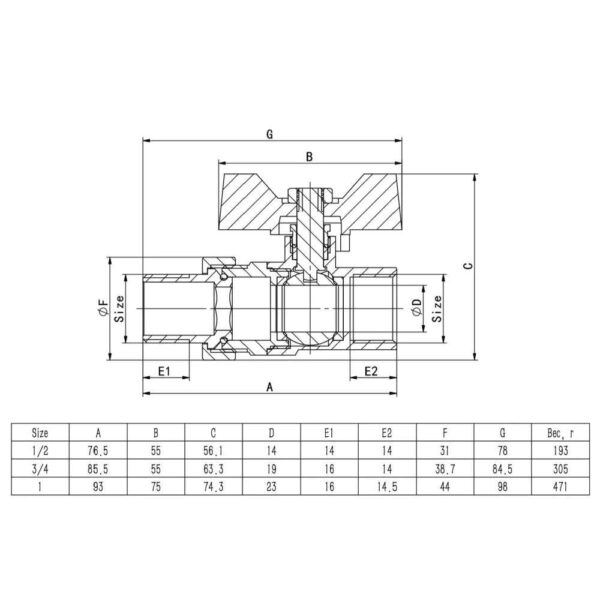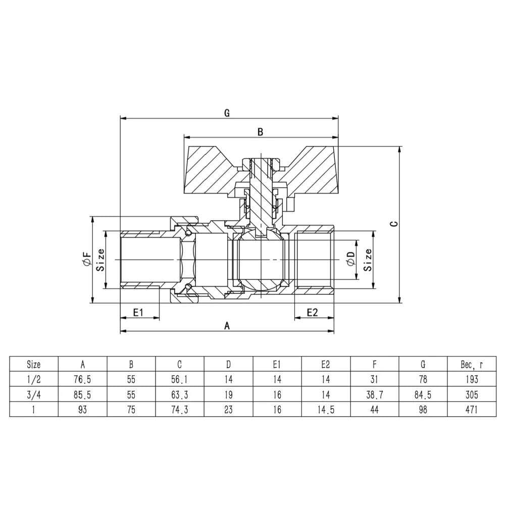 Кран с американкой ITAL 3/4″ ВН прямой, латунь (IB110224)