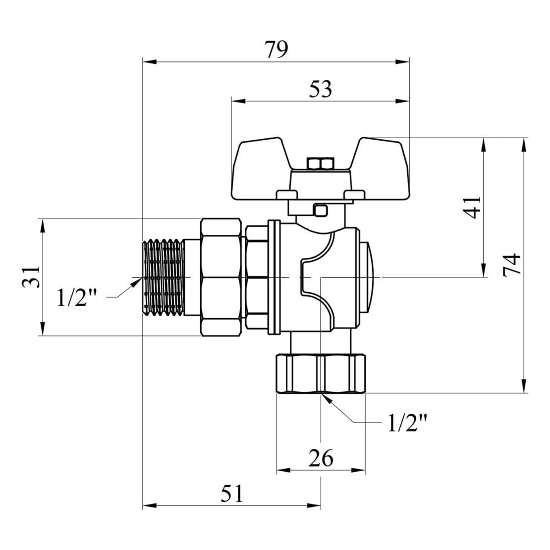Кран с американкой WaGa 1/2″ ВН угловой, латунь (WG-100018)