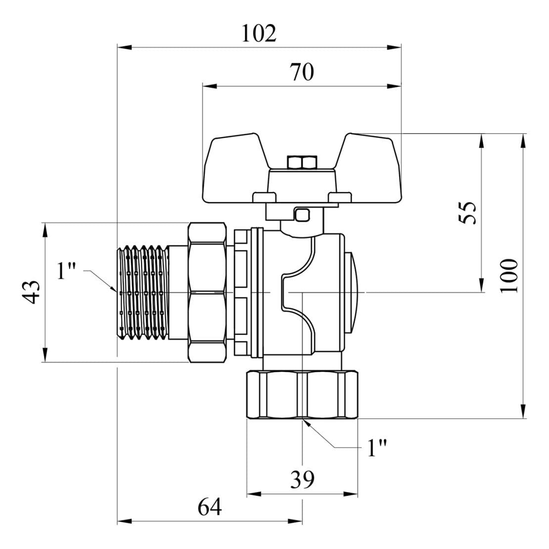 Кран с американкой WaGa 1″ ВН угловой, латунь (WG-100020)