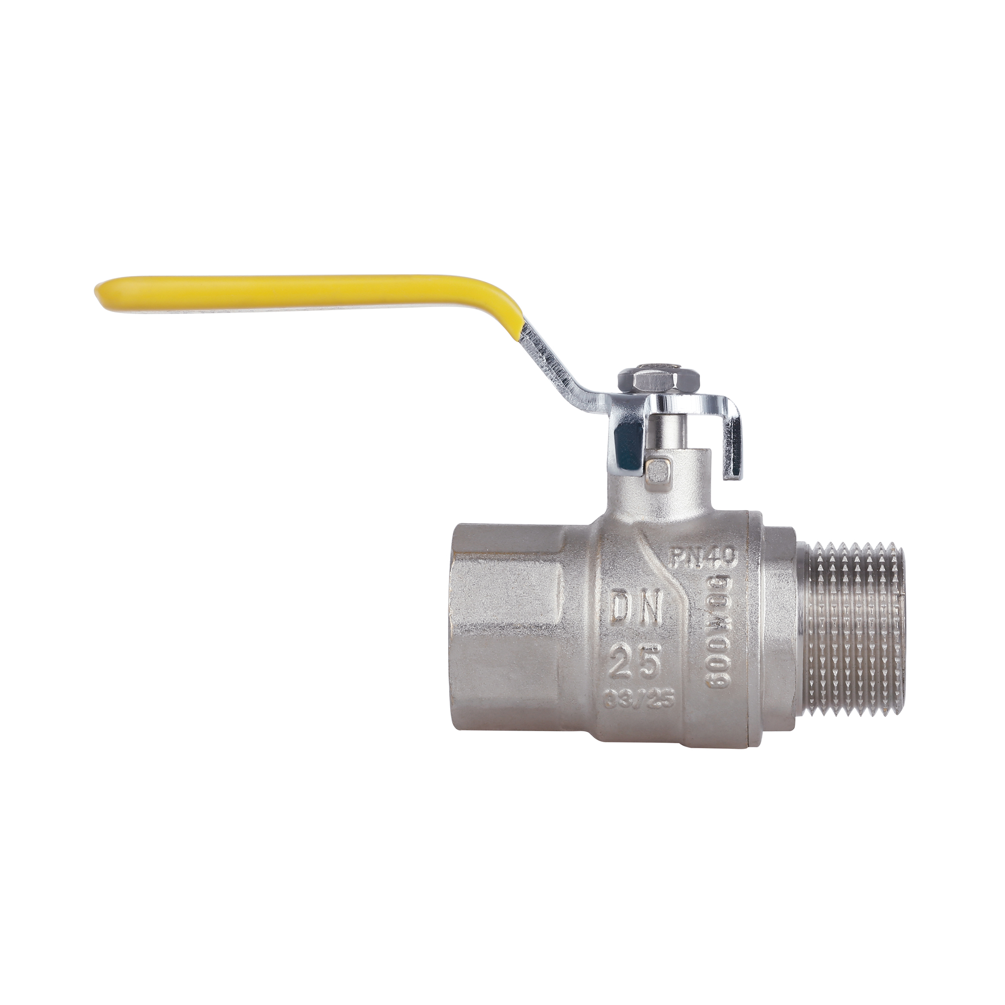 Кран шаровой SD Forte 1" ВН для газа (ручка) — латунный никелированный элемент запорно-регулирующей арматуры. Используется в газопроводных системах.