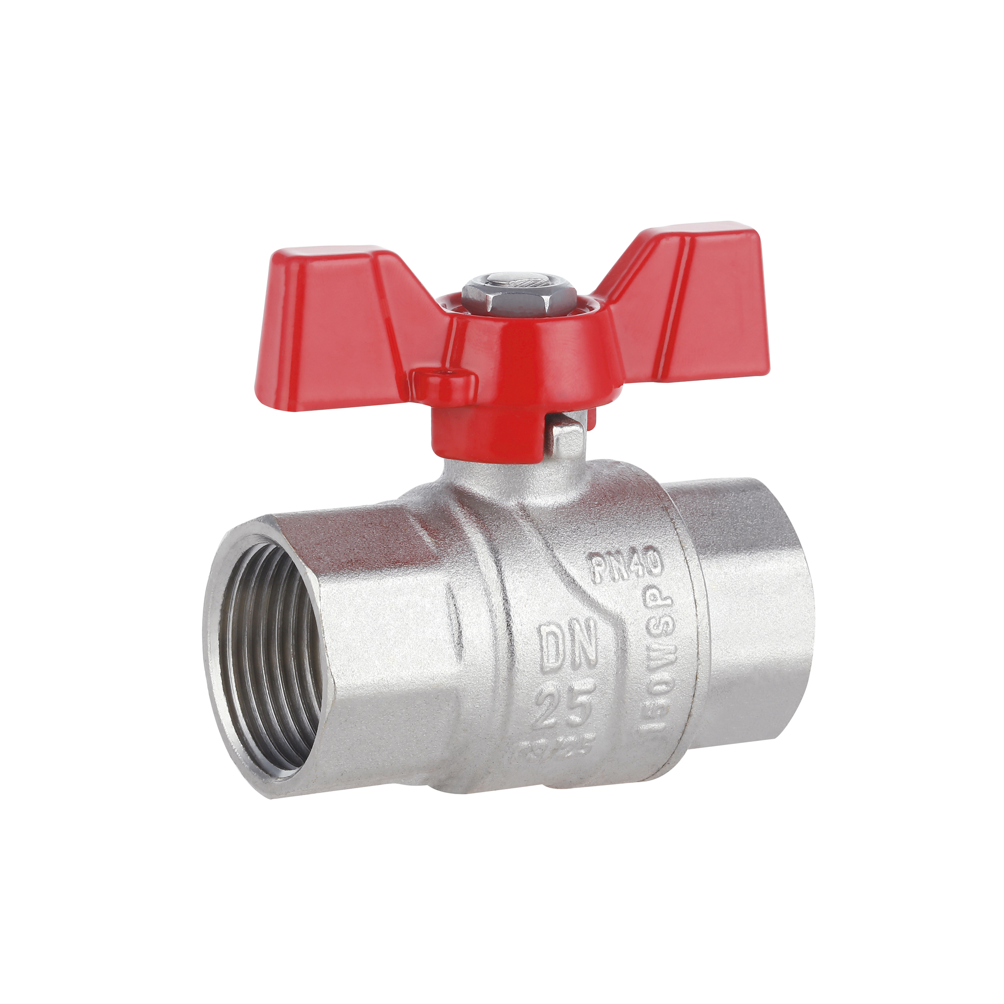 Кран шаровой SD Forte 1" ВР для воды (бабочка), изготавливается из высококачественной латуни с никелированным покрытием.