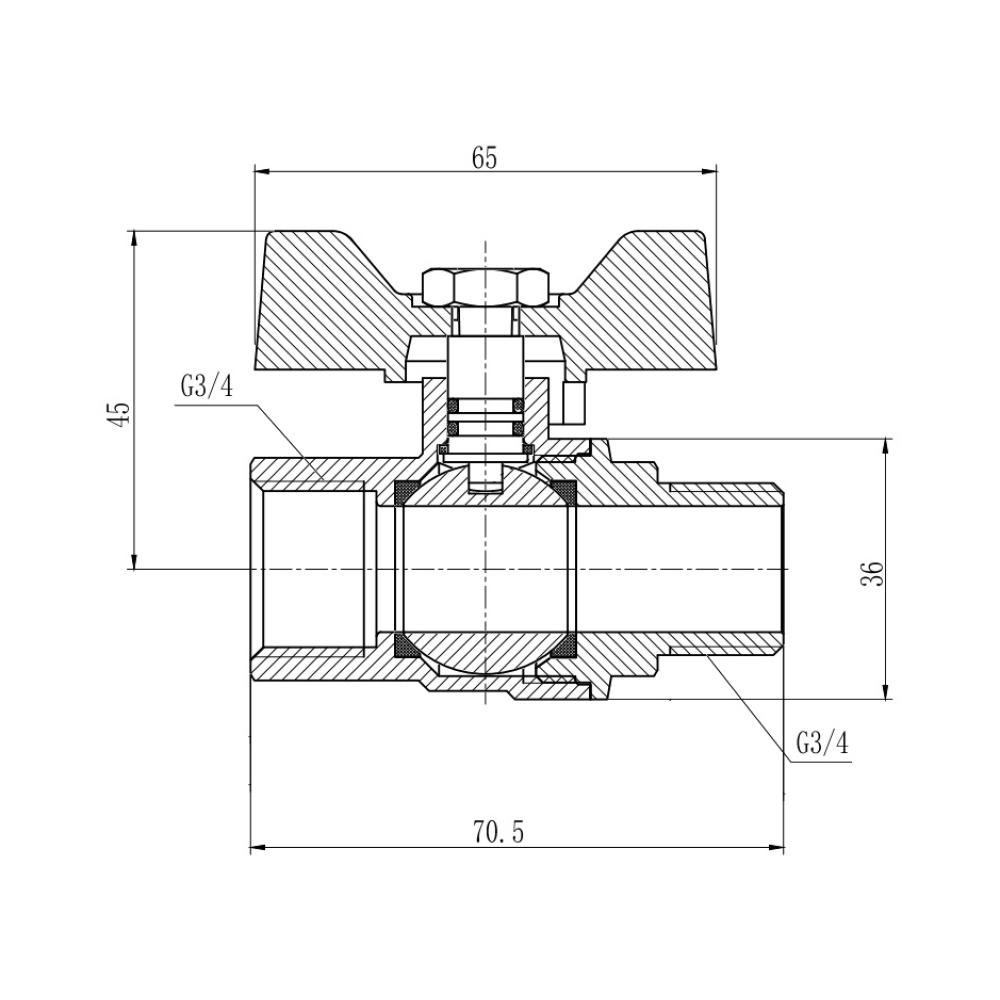 Кран шаровой SD Forte 3/4" ВН для газа (бабочка) SF607G20