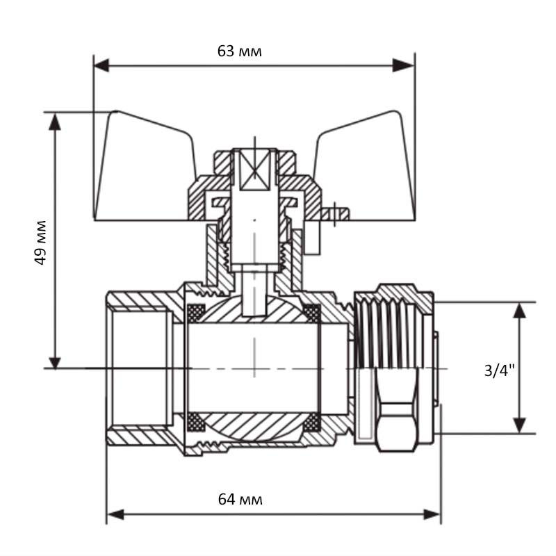 Шаровой кран Koer Wing KR.351 3/4″ прямой, латунь (LL1790)