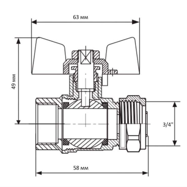 Шаровой кран Koer Wing KR.352 3/4″ прямой, латунь (LL1789)