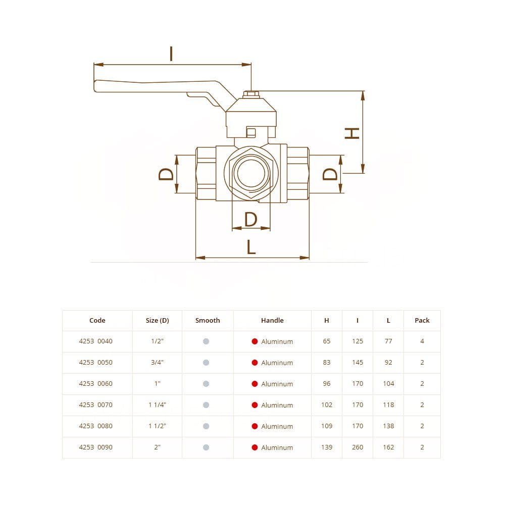 Трехходовой шаровой кран Bianchi Т-образный 1 1/4″ ВВВ, латунь (4253T0070F)