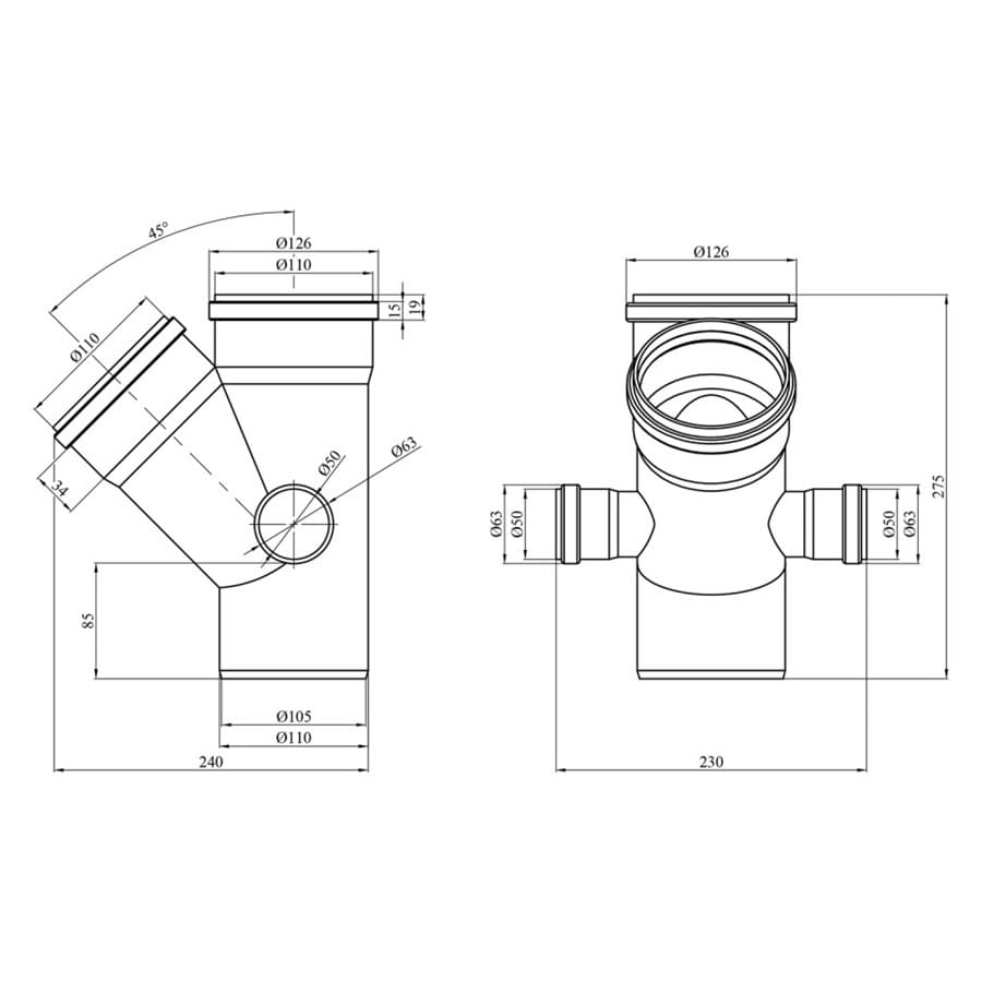 Крестовина внутренней канализации Rozma 110×50мм 45°/90° двухплоскостная (CV030235)